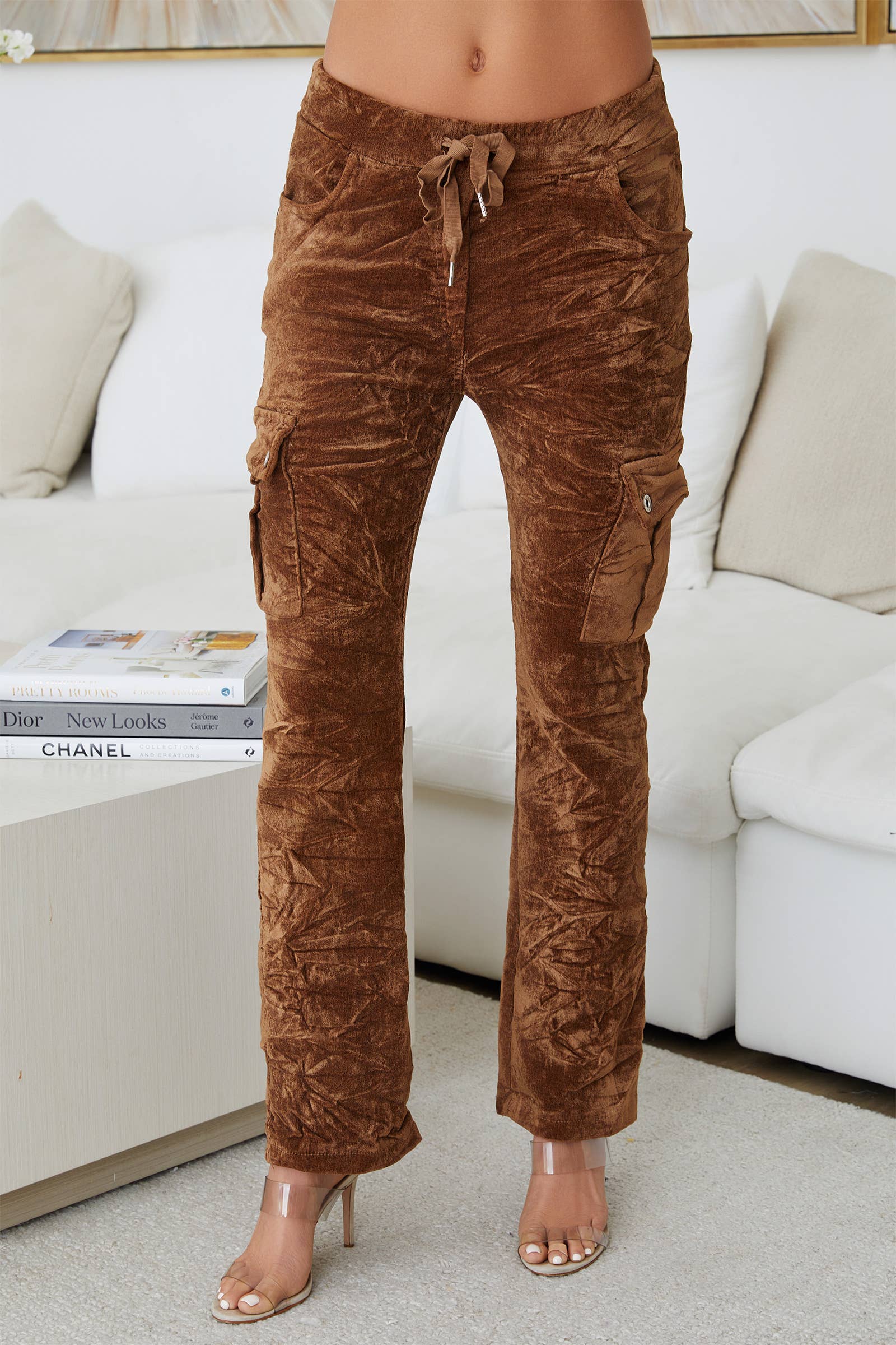OUR CRUSHED VELVET CARGO CRINKLE JOGGERS ARE MADE FROM A PREMIUM FABRIC FOR AN ULTRA-SOFT AND LUXURIOUS FEEL. FEATURING A CLASSIC CARGO DESIGN WITH MULTIPLE POCKETS, THESE JOGGERS PROVIDE AMPLE STORAGE AND A PERFECT FIT.