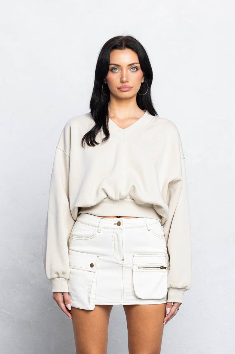 – Soft V neck cropped sweatshirt