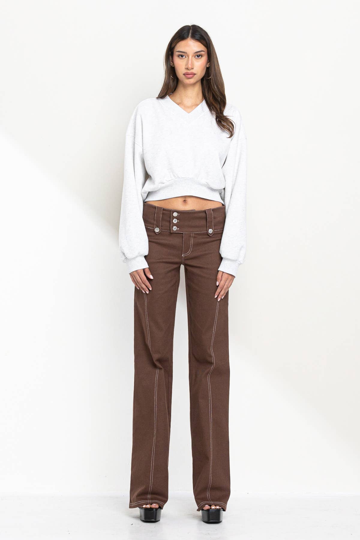 – Stitch line detail semi wide pants