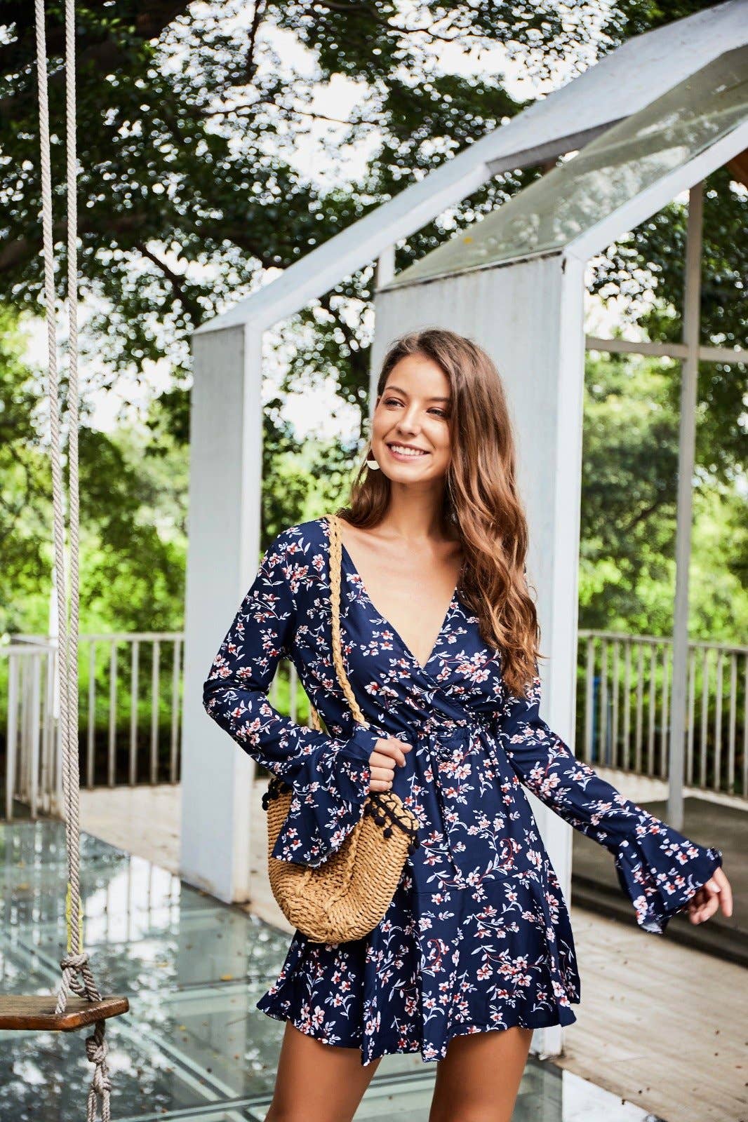 Wear this dress in any season, thanks to the combinations of floral patterns with darker color schemes, as well as long sleeves with an above-the-knee length.