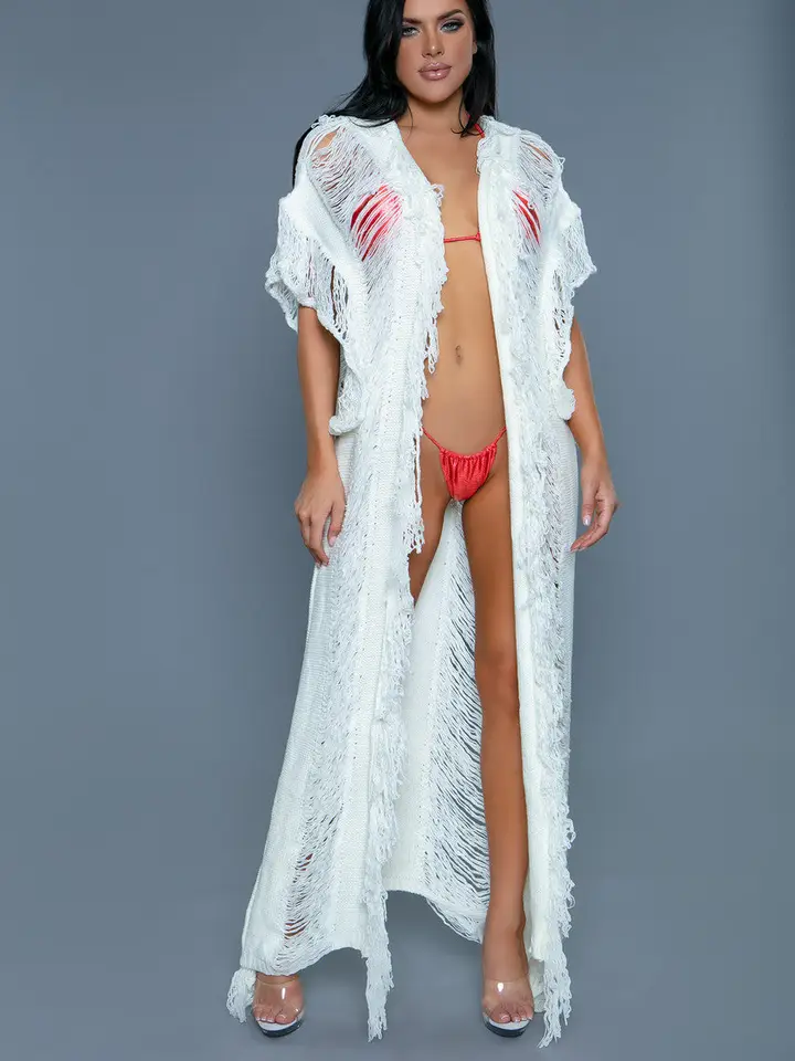 Vivian boho cover-up with fringe detail.